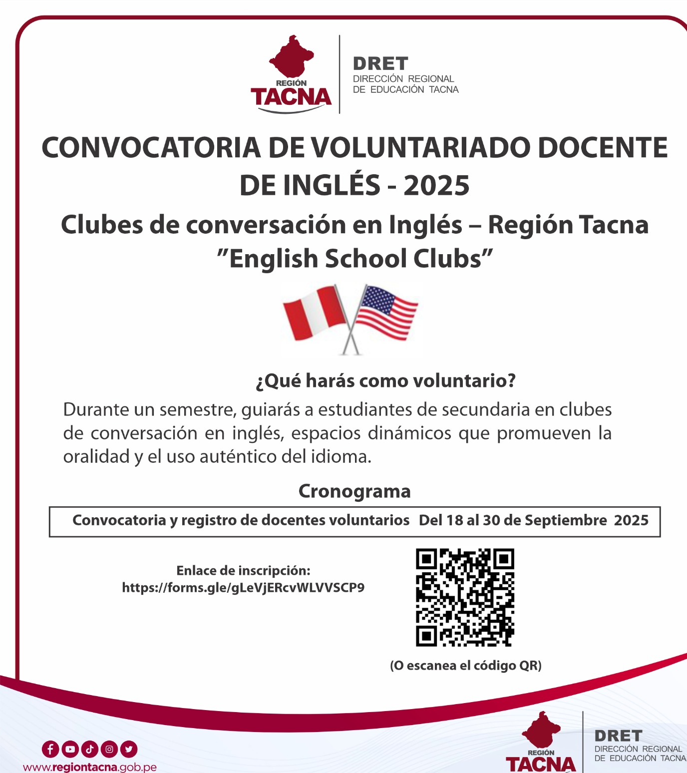 189 Convocatoria de Voluntariado docente de ingles Ver Enlace 09-23-2025