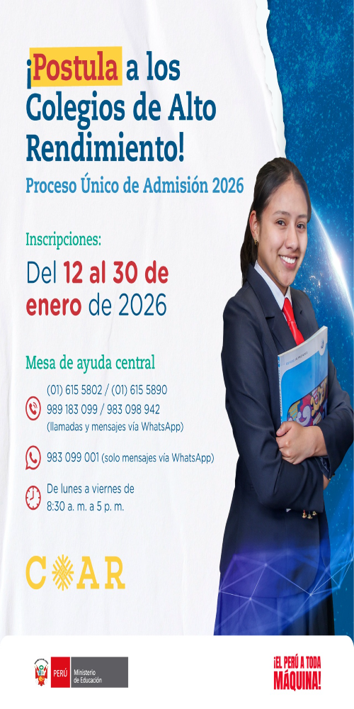 | 208 | ¡POSTULA A LOS COLEGIOS DE ALTO RENDIMIENTO! | 01-15-2026 | |