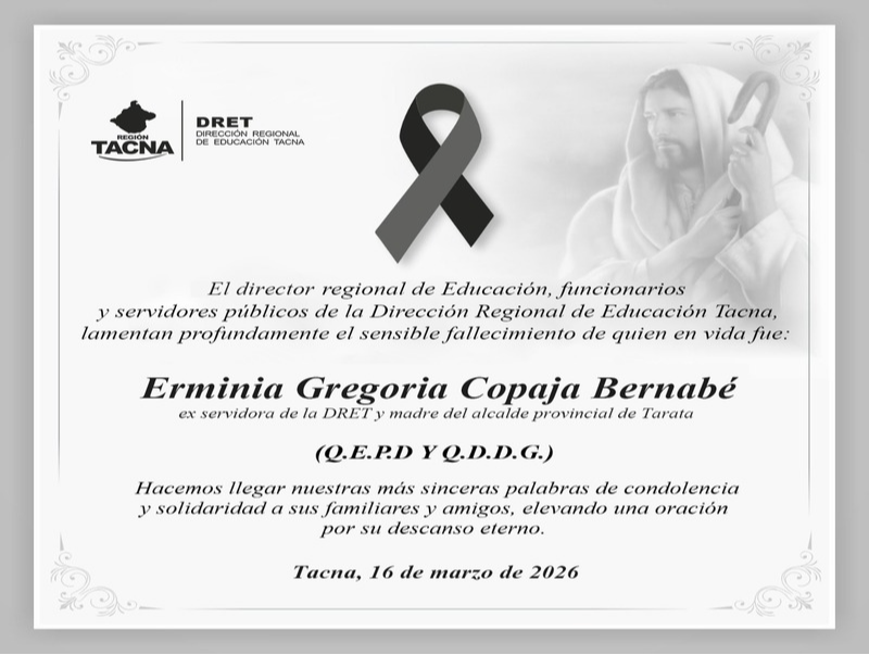 | 224 | Se comunica a los postulantes del concurso público de méritos abierto de docentes regulares del IESTP " Ramon Copaja "de Tarata 2026, que quedaron en el Ranking del programa de estudios de contabilidad y Arquitectura de Plataformas y Servicios de Tecnologías de la Información, a quienes se invita para el día 31 de marzo del 2026 a hora 08:30 am en el auditoria de la Institución para el proceso de adjudicación de posiciones vacantes generadas | 03-30-2026 | |